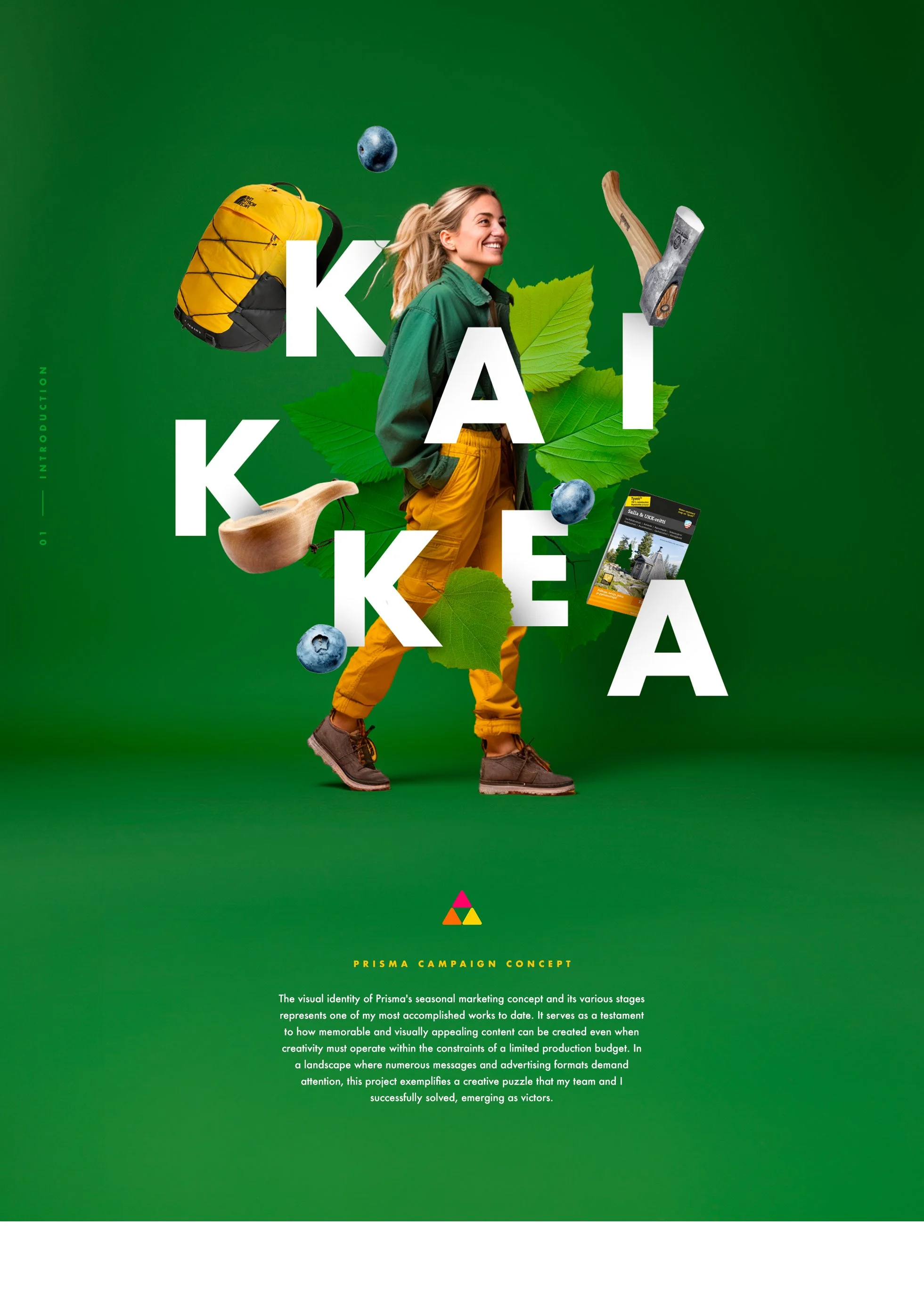 The visual identity of Prisma's seasonal marketing concept and its various stages represents one of my most accomplished works to date. It stands as a testament to how memorable and visually appealing content can be created even when creativity must operate within the constraints of a limited production budget. In a landscape where countless messages and advertising formats compete for attention, this project exemplifies a creative puzzle that my team and I successfully solved, emerging as victors.
